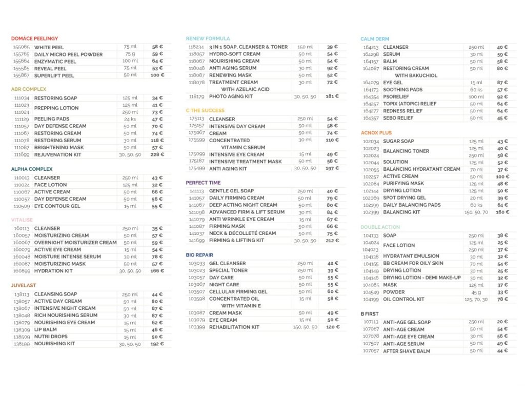 Obsah: B2C cenník produktov + marketingový popis procedúr HL na zadnej strane
